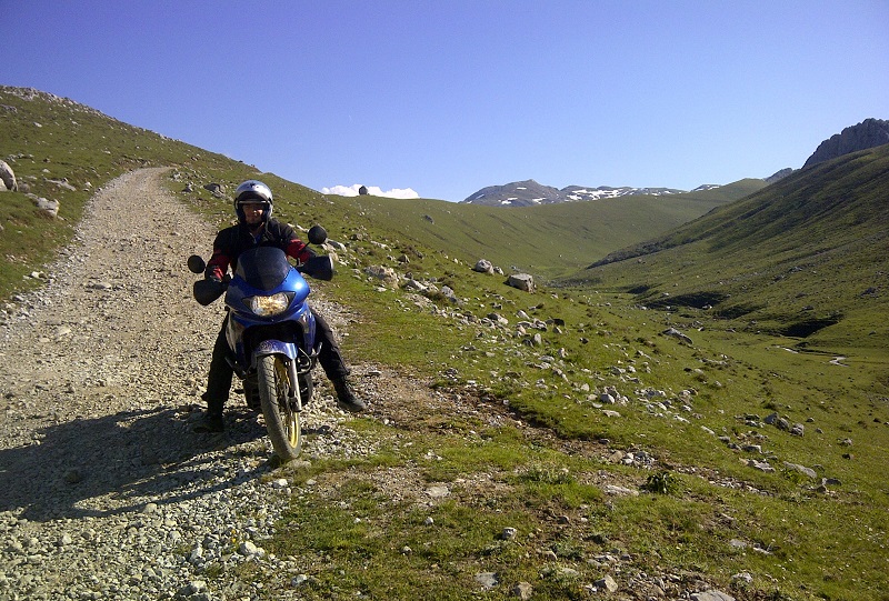 La carretera comarcal es estrecha y bastante mal conservada. No hay problema con la moto. En coche supongo que no será lo mismo... Seguimos dirección al sur, hacia el puerto de Tarna.